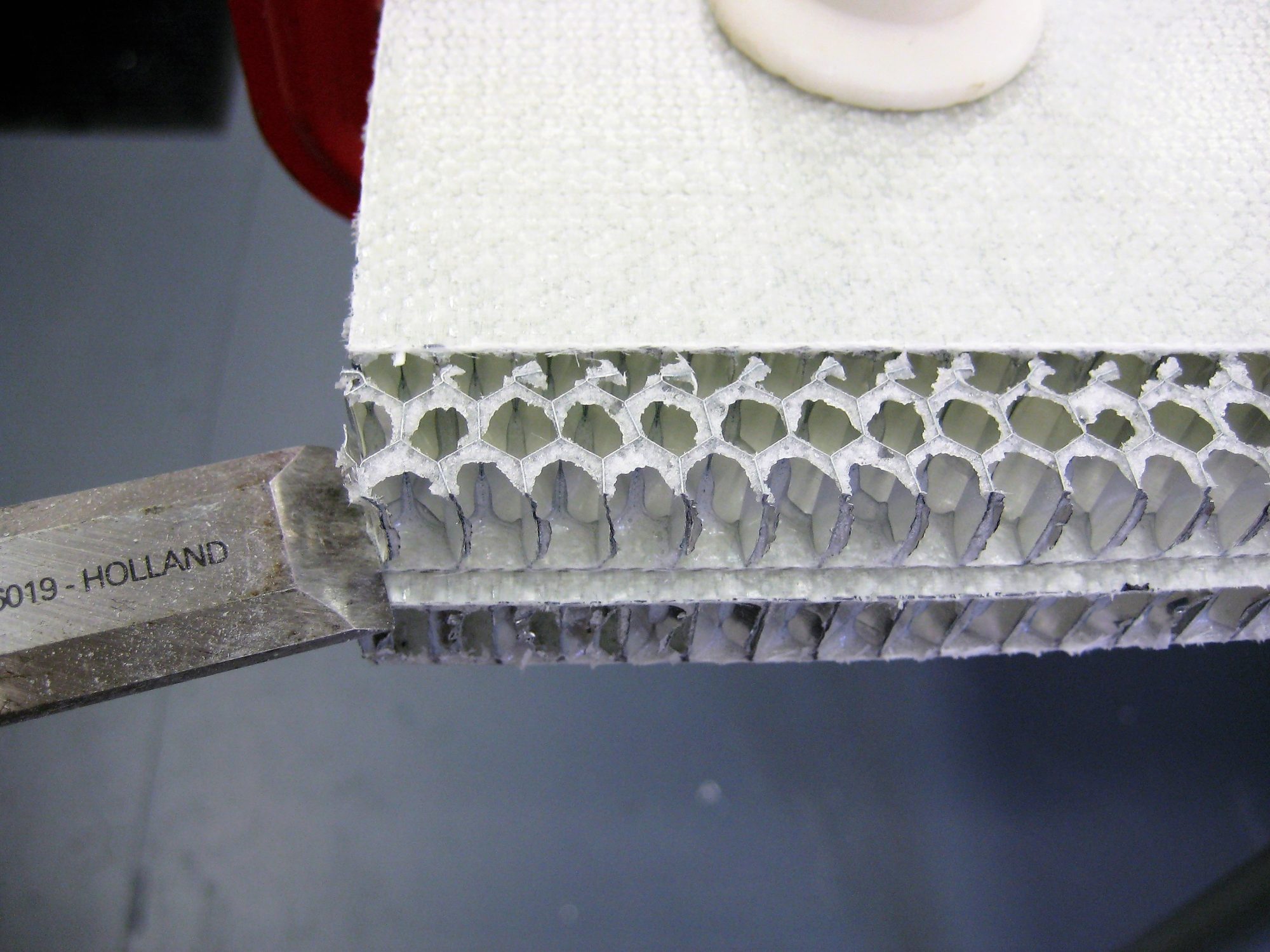 The backboard used was a honeycomb core aluminium material bonded between skins of woven glass cloth impregnated with epoxy adhesive. This provided excellent backing to corrosive atmospheres and acted as an insulator between the glass mosaic and the brick wall.